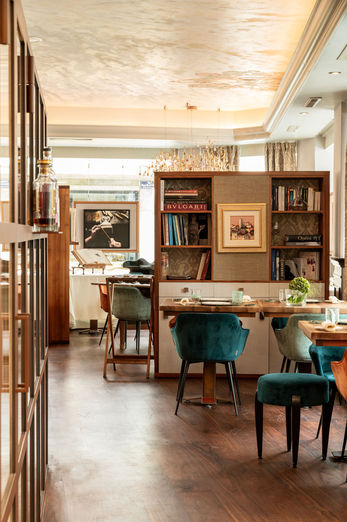 Tosca, an iconic restaurant in Geneva, has recently been refreshed, guided by Iconia’s expertise, combining exceptional design with meticulous attention to detail. The venue captivates guests with an elegant and welcoming atmosphere, created through the harmonious blend of wood, glass, and fabric. Chandeliers cast a soft light that highlights carefully selected wall art and bookshelves, enhancing the overall aesthetic.